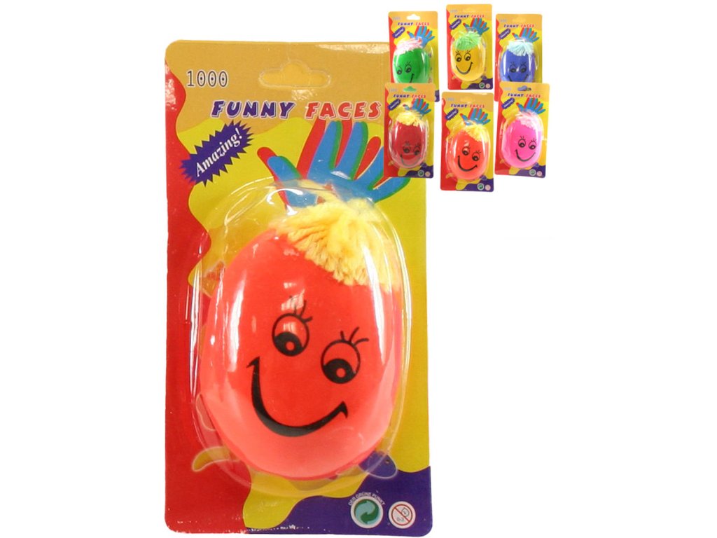 Míček veselý antistresový s vlásky hlava s obličejem mačkací 6 barev