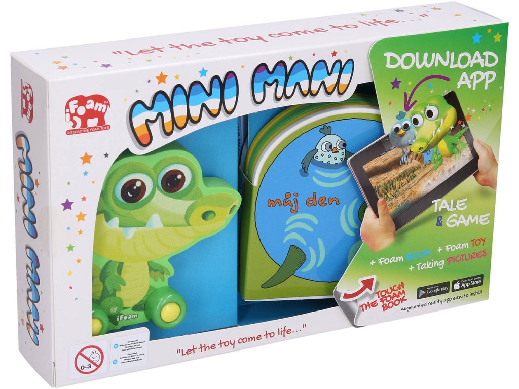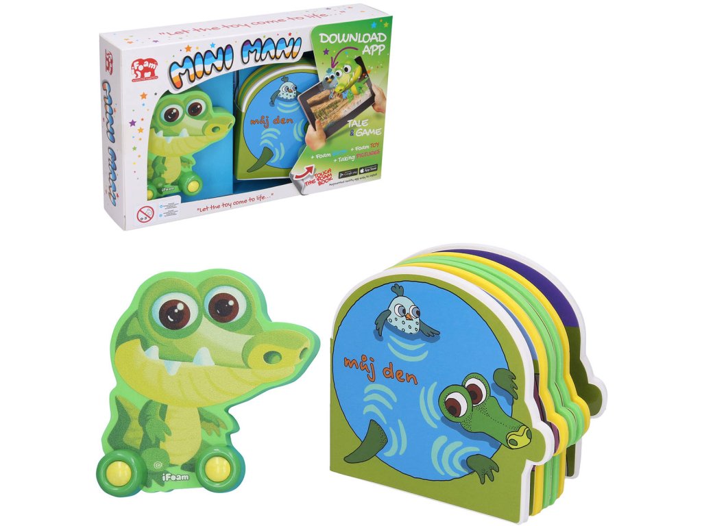 Mini Mani interaktivní herní set pěnové zvířátko krokodýl na kolečkách + pěnová knížka. Rozšířená realita s aplikací ke stažení.