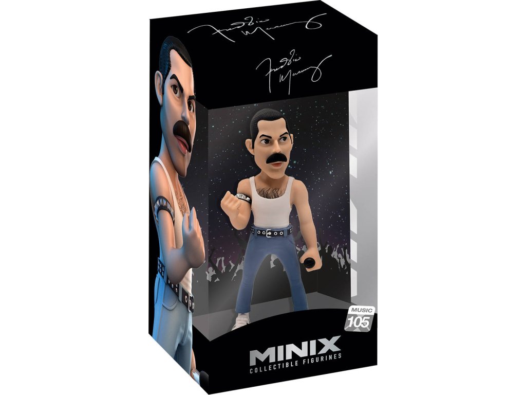 Minix Music hudební legendy, zpěvák Freddie Mercury, charakteristická plastová sběratelská figurka č. 105 pro všechny hudební fanoušky. Baleno v krabičce s průhledem.