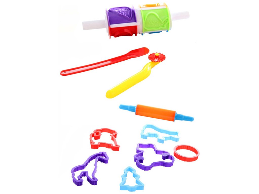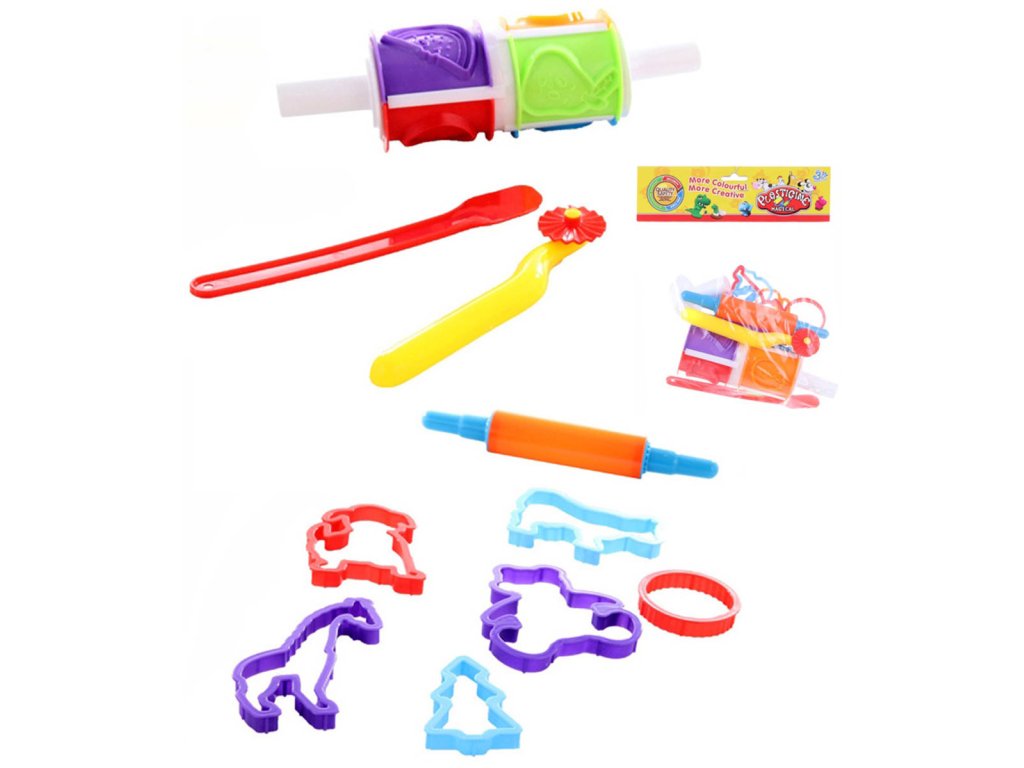 Modelovací sada obsahuje 6 vykrajovátek, špachtli, rádílko, váleček a vykrajovací váleček.