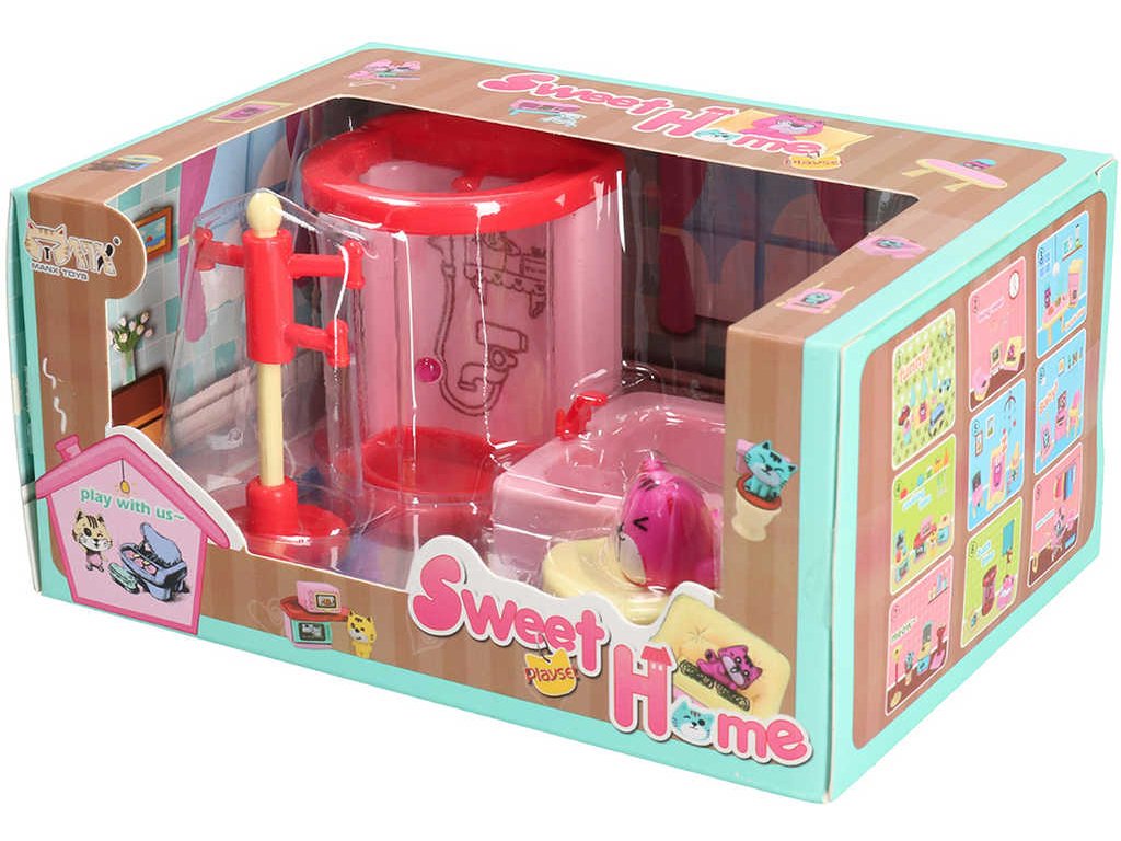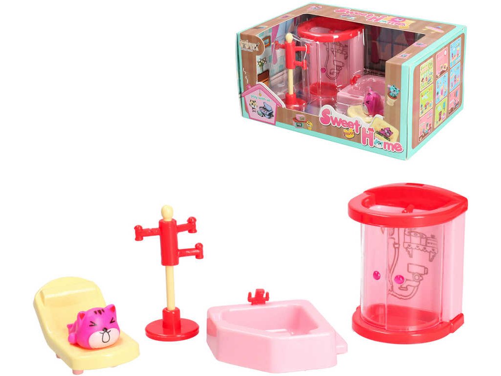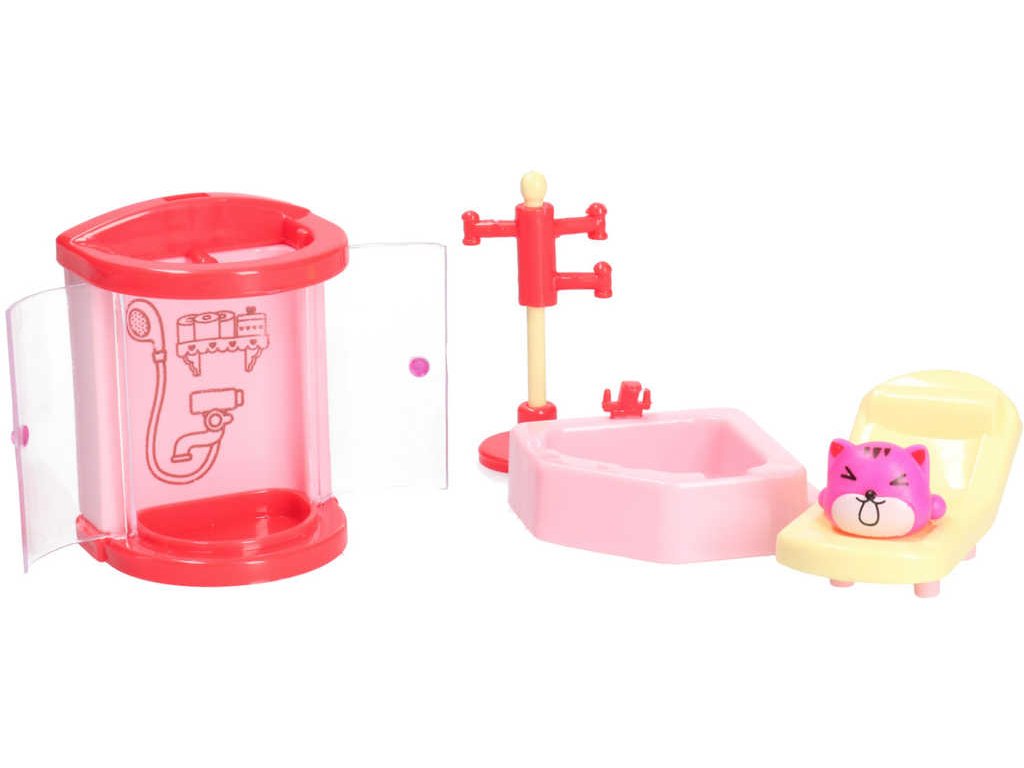 Koupelna - plastový herní set s nábytkem. Perfektní jako doplněk do domečku pro panenky nebo i pro samostatnou hru. Nábytek určený pro mini panenky. Baleno v krabici.