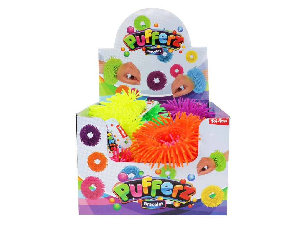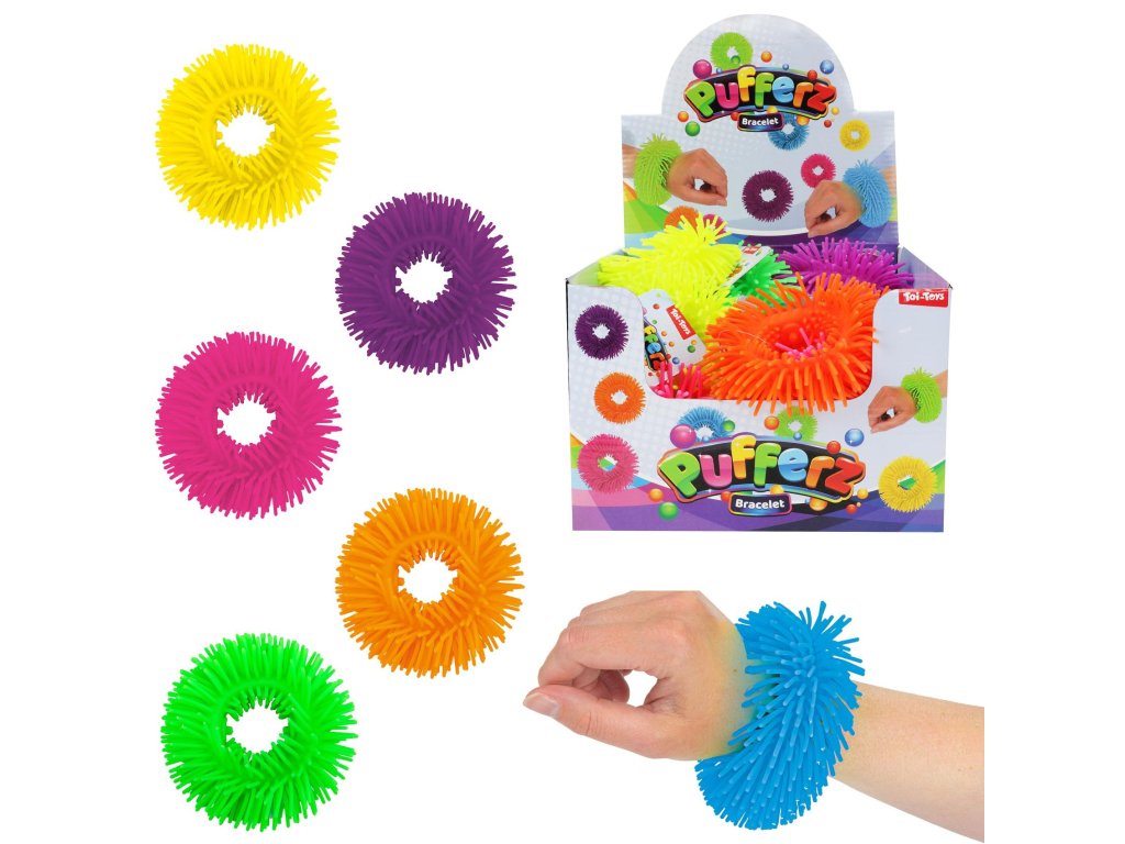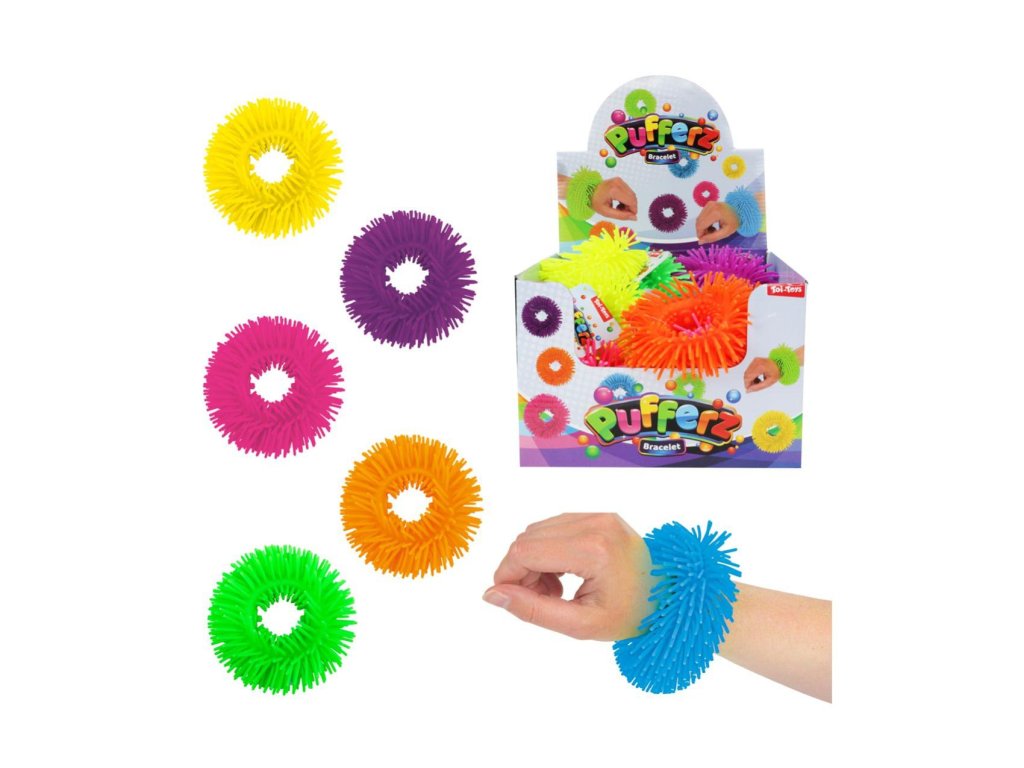 Náramek antistresový mačkací natahovací silikon 11cm 6 barev 24ks v boxu