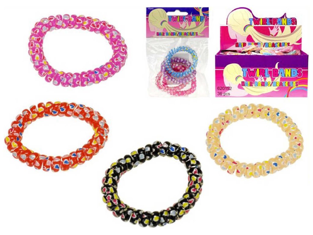 Originální holčičí náramek na ruku, z krouceného plastu, s potiskem nebo bez, v šesti variantách provedení, pro všechny malé parádnice. V balení najdeš čtyři různé náramky. Baleno v sáčku