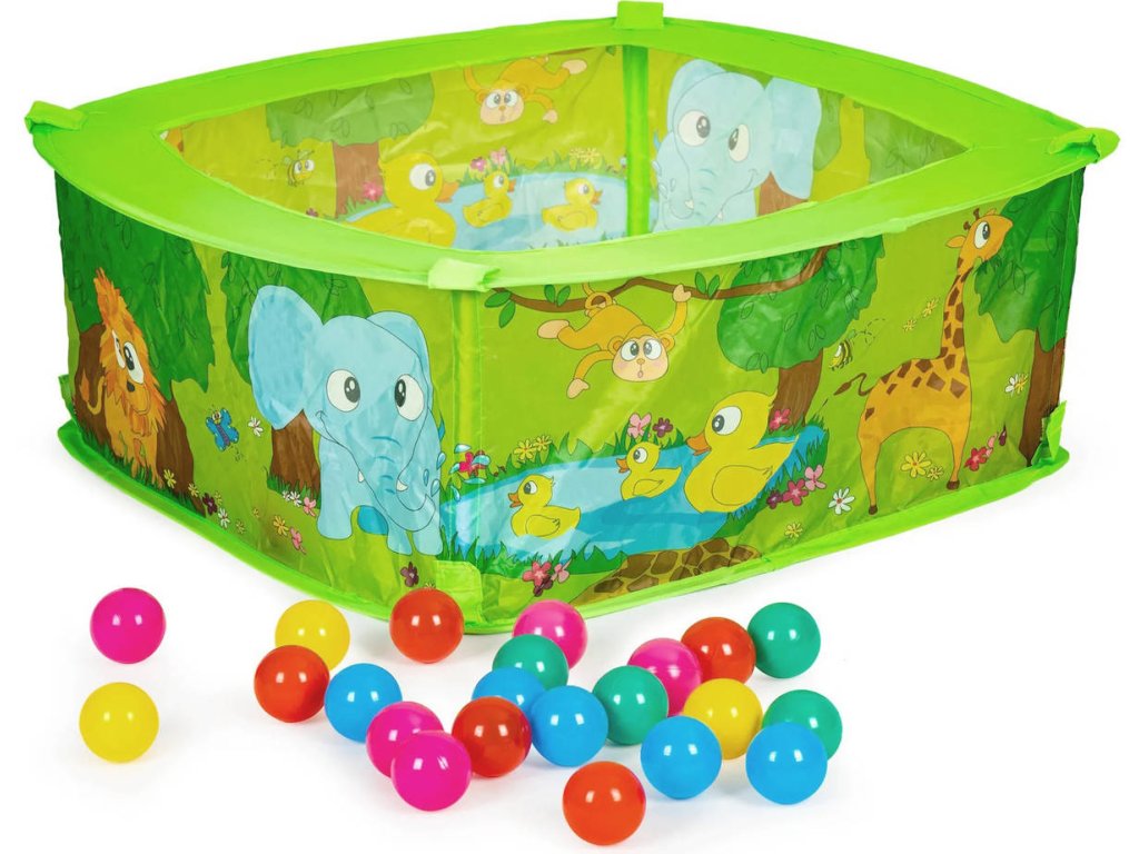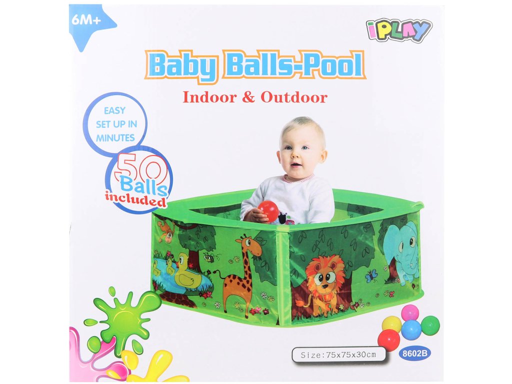 Ohrádka se dnem s 50 barevnými soft měkkými balonky, o rozměrech cca 75 x 75 x 30cm. Součástí balení 50 míčků. Bazének můžete použít doma v pokojíku ale také v létě venku na zahradě.