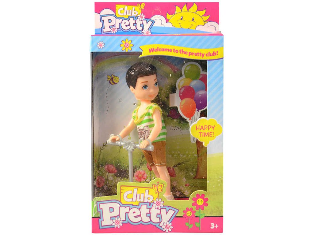 Herní set obsahující kloubového panáka kluka v triku a šortkách na suchý zip, které lze sundat, a koloběžku. Chlapeček má tělíčko z tvrdého plastu, hlavička je měkká. Baleno v krabici.