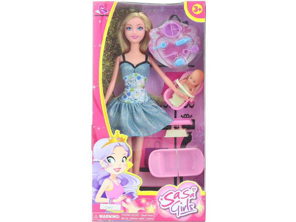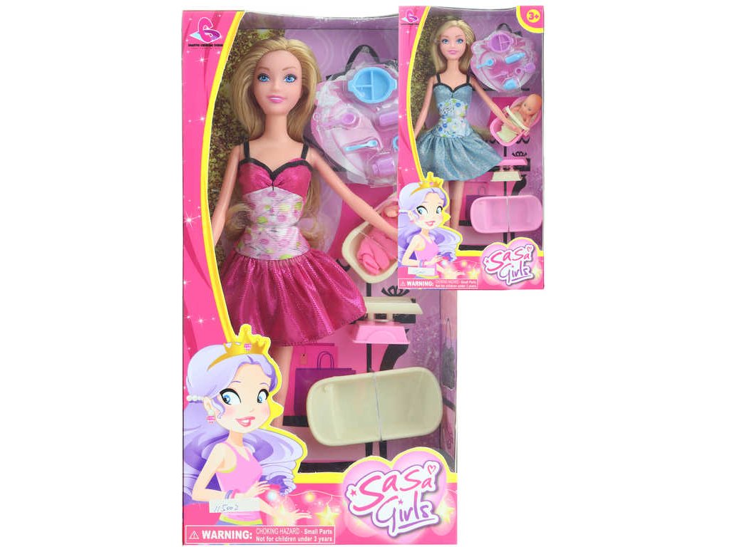 Pěkný herní set s panenkou, miminkem kojencem a spoustou dalších doplňků, ve dvou barevných provedeních, pro všechny malé maminky. Baleno v krabici.