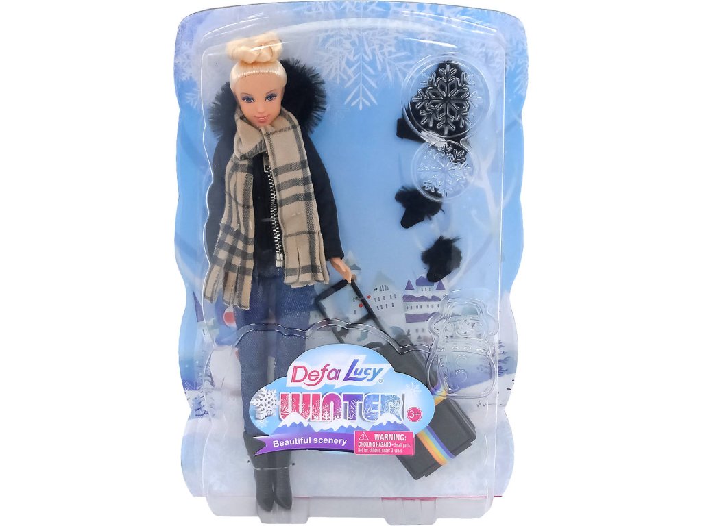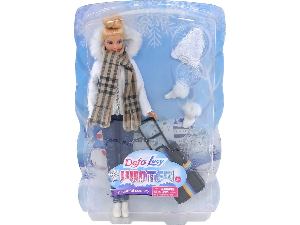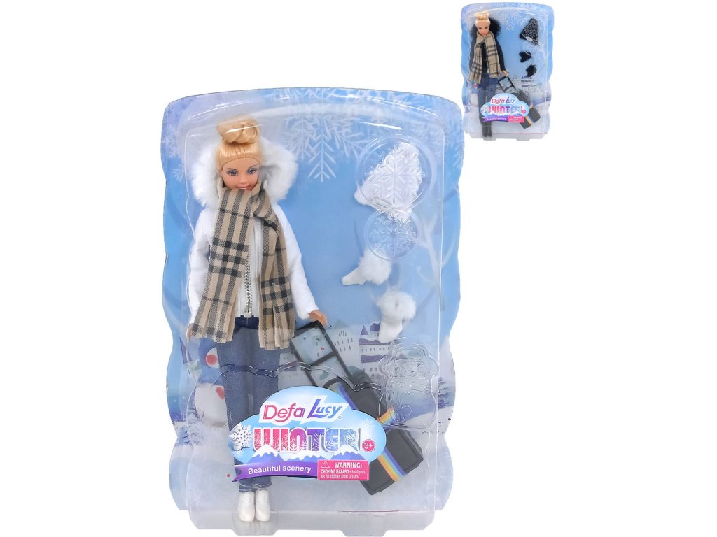 Kloubová panenka DeFa Lucy Winter, zimní oblečení, součástí šála, rukavice, čepice a zavazadlo, 2 barevné varianty, velikost 29cm.