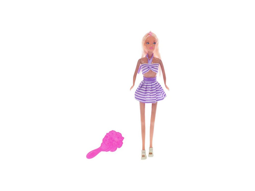 Panenka měnící barvu 29cm kloubová set s hřebenem letní obleček plast