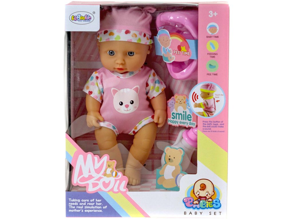 Panenka miminko 30cm set s doplňky pije čůrá na baterie Zvuk 2 barvy