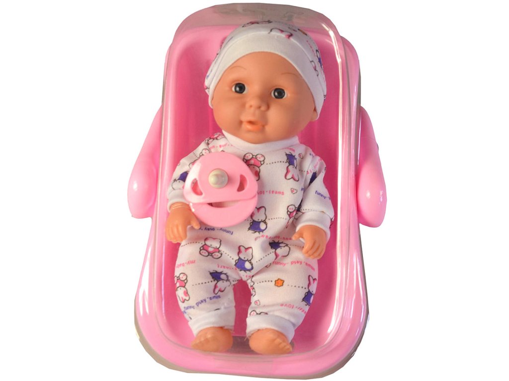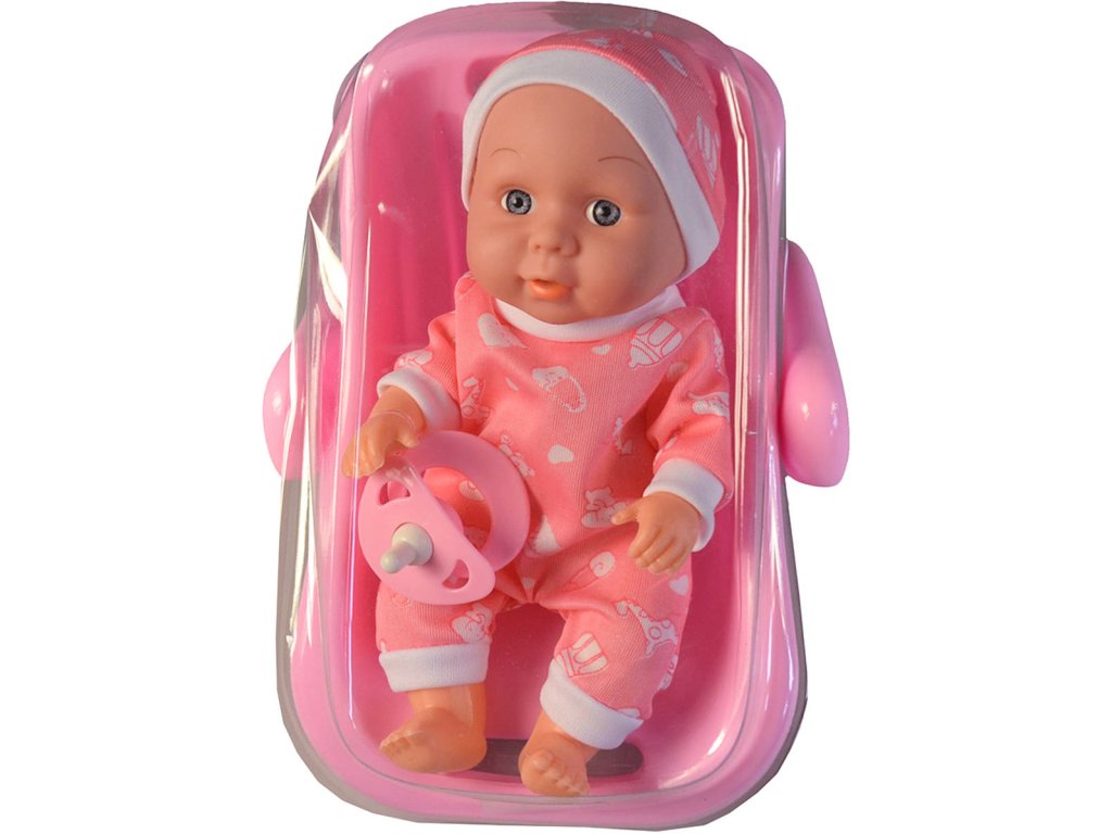 Panenka miminko v plastovém přenosném sedátku. Součástí balení je nosítko, dudlík a panenka v oblečku. Hračka ve třech variantách provedení.