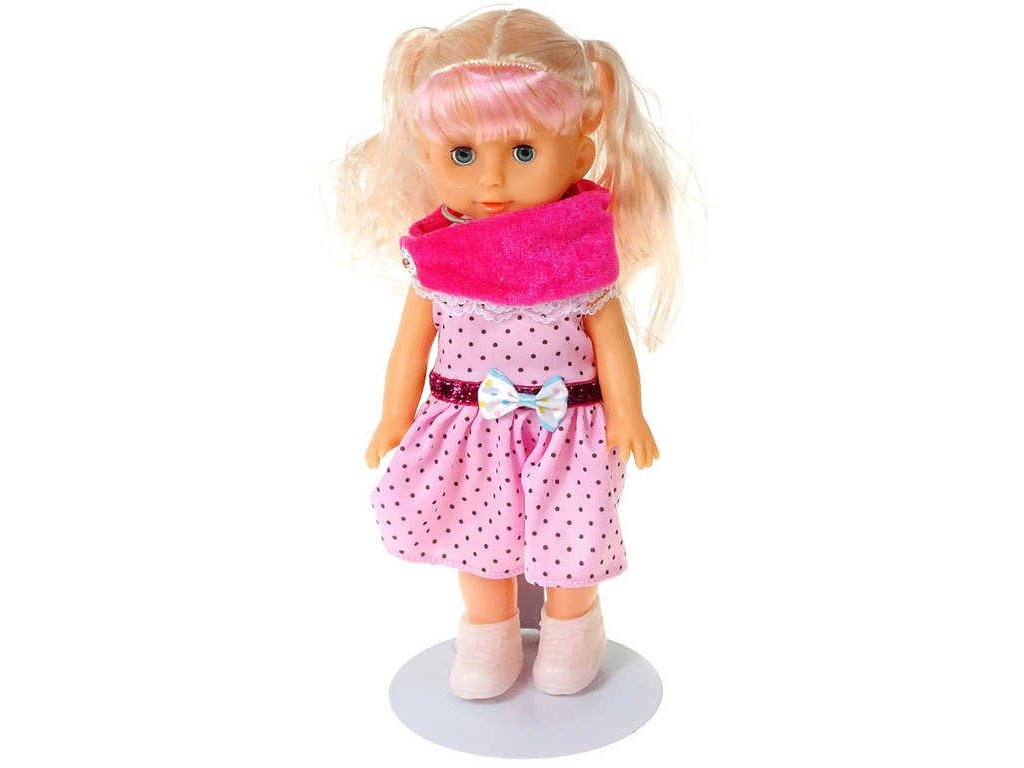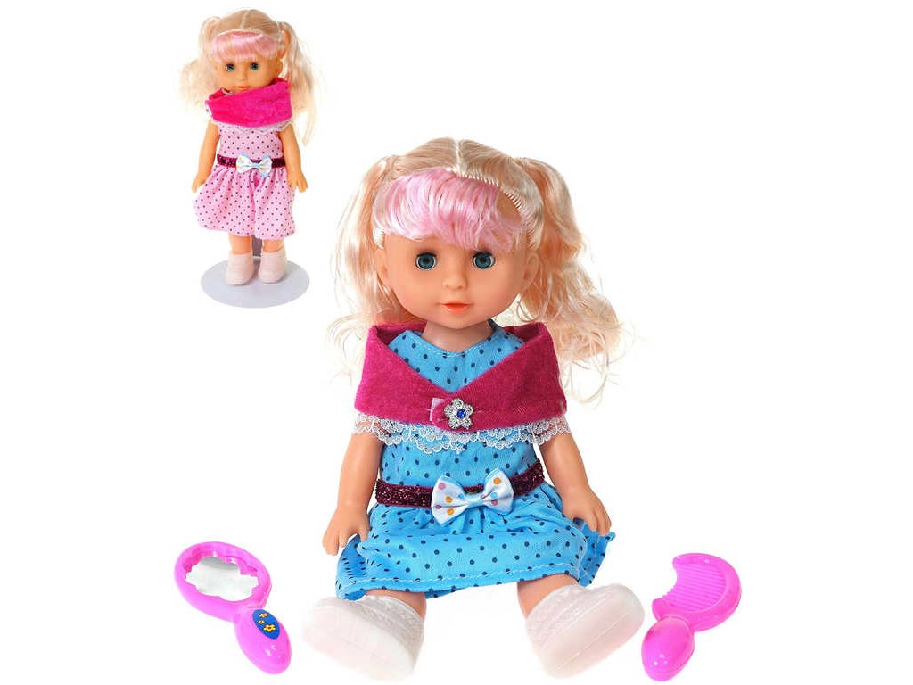 Půvabná panenka v puntíkovaném oblečku, s dlouhými blonďatými vlásky, které můžeš česat přiloženým hřebenem. Součástí balení je také zrcátko. Kloubová, mrkací panenka, ve dvou barevých variantách. Baleno v sáčku.