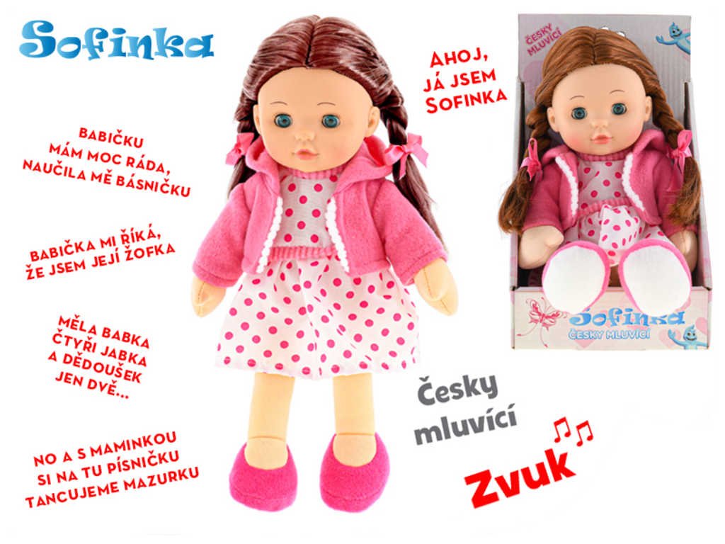 Panenka Sofinka hnědé vlásky 31cm měkké tělo na baterie mluví česky CZ Zvuk