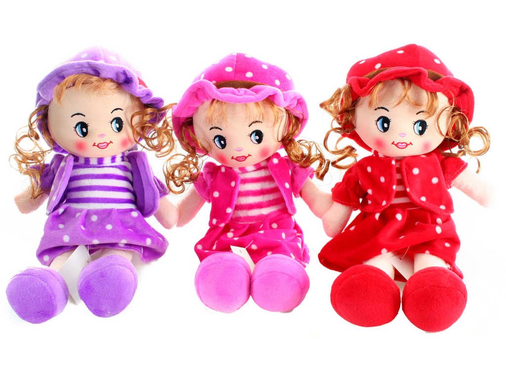 Panenka soft textilní 33cm měkká v šatičkách s kloboučkem 3 barvy