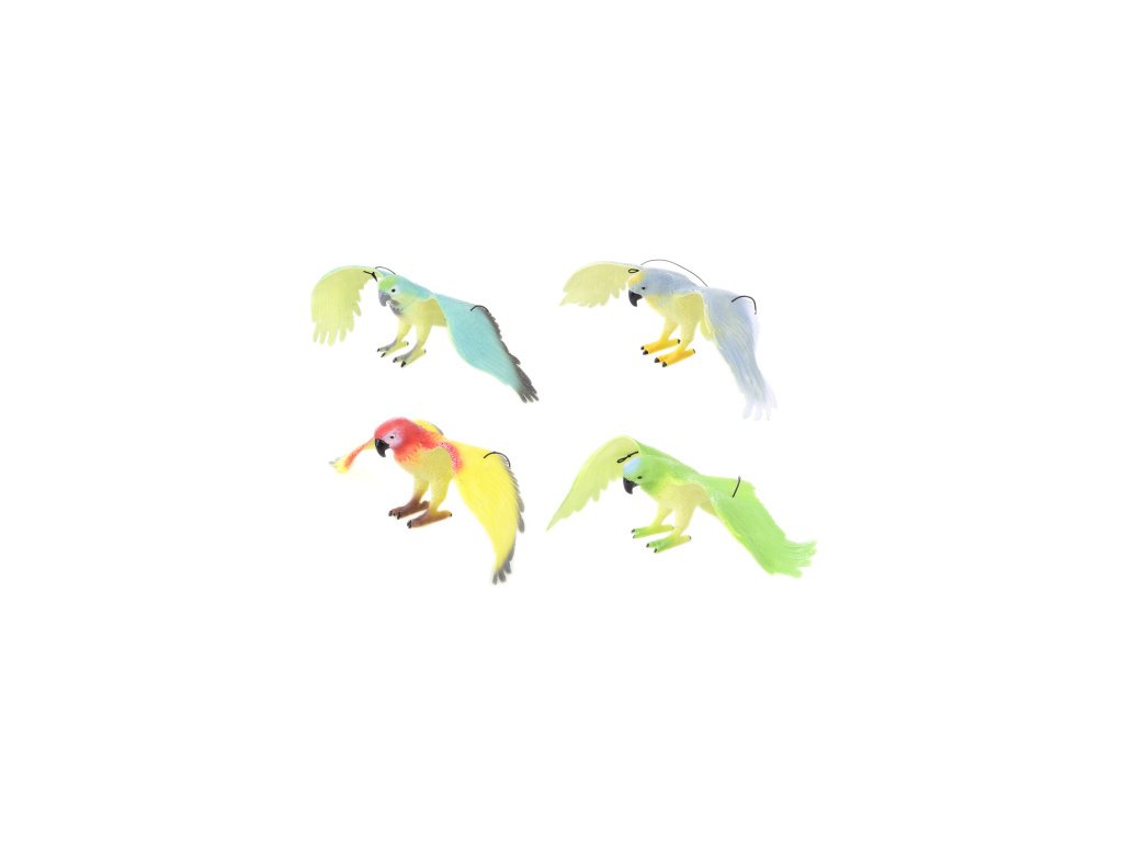 Gumový papoušek o velikosti cca 33 x 13 x 9 cm. Papoušek má gumu na zavěšení.