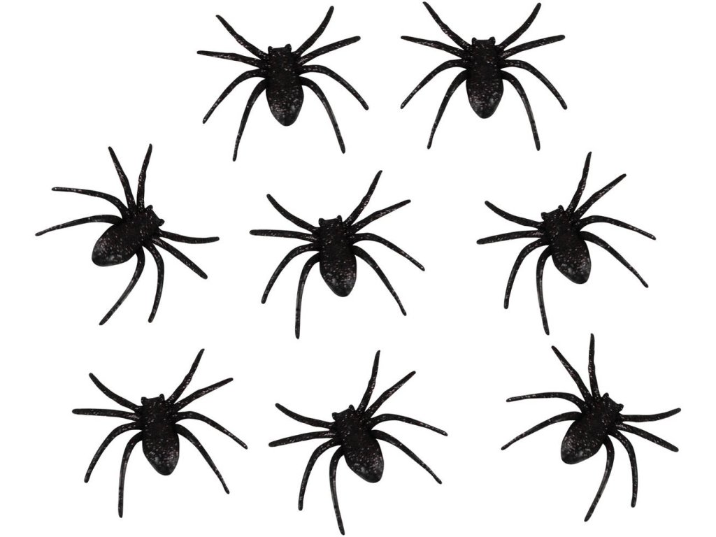 Malí plastoví, třpytiví pavouci v černé barvě, jsou senzační dekorací na Halloweenskou párty! Balení obsahuje 8 ks pavouků ve velikosti 6 cm.