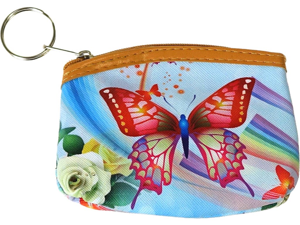 Peněženka dětská na zip motýlci 6 druhů plast