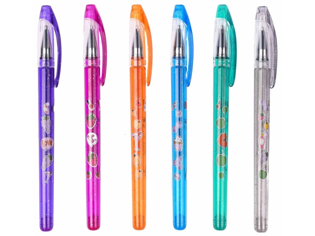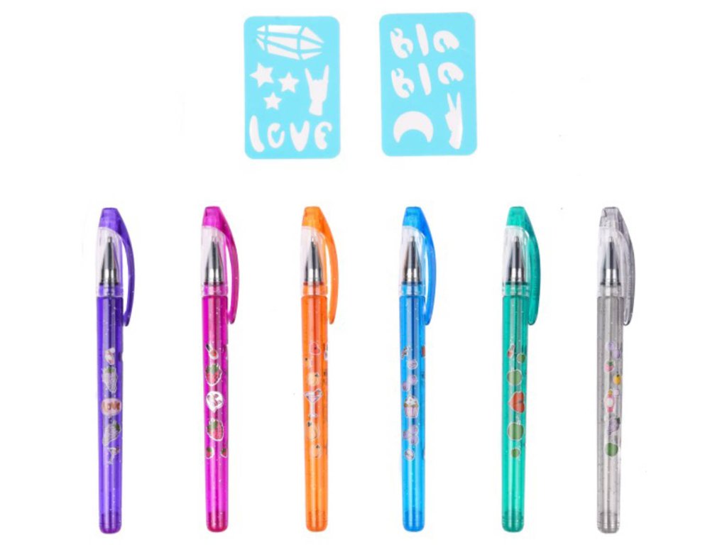 Sada šesti voňavých tetovacích gelových per v různých barvách se šablonami. Parfémovaná tetovací gelová pera, díky kterým si můžete jednoduše vytvořit vlastní parádní tetování.
