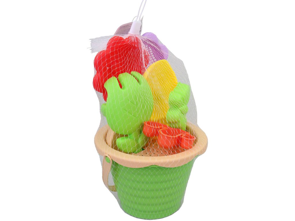 Obsah balení: kyblík, sítko s držadlem 2x, síto, formička 2x, lopatička, hrabičky