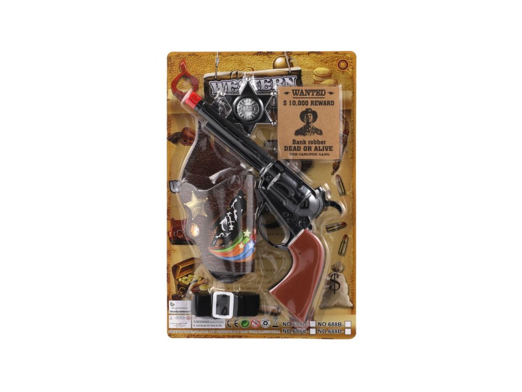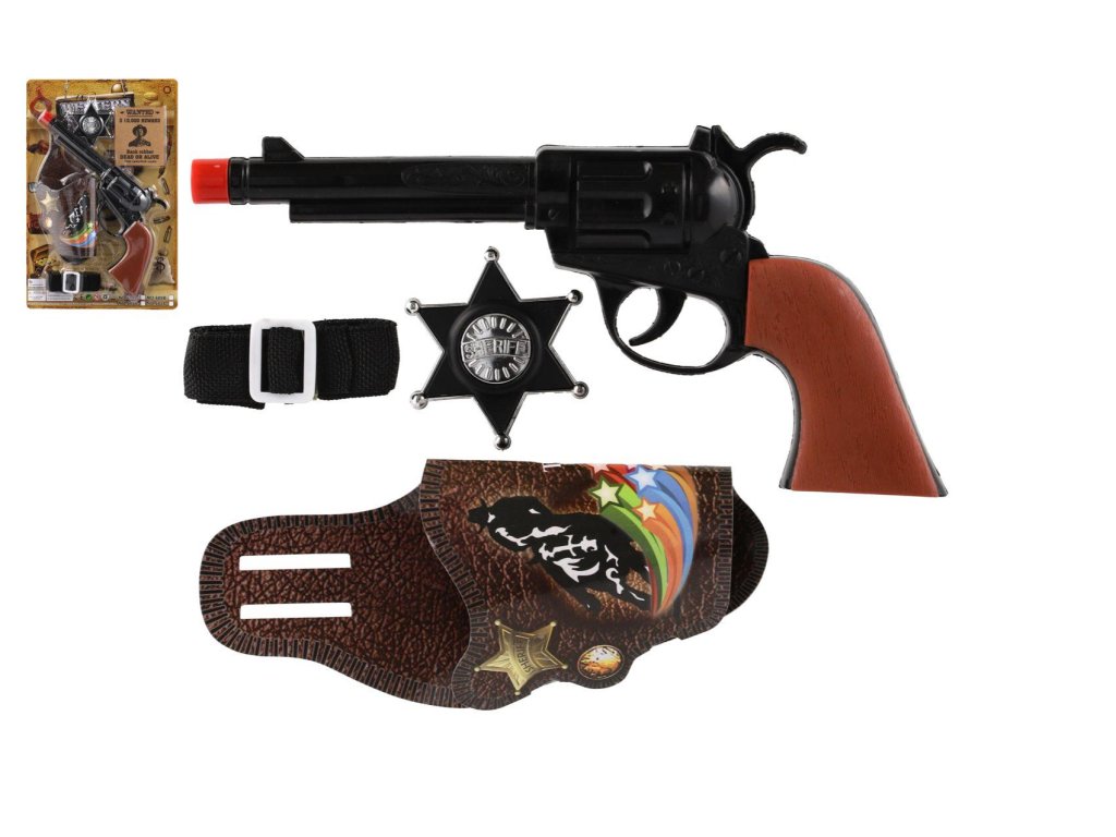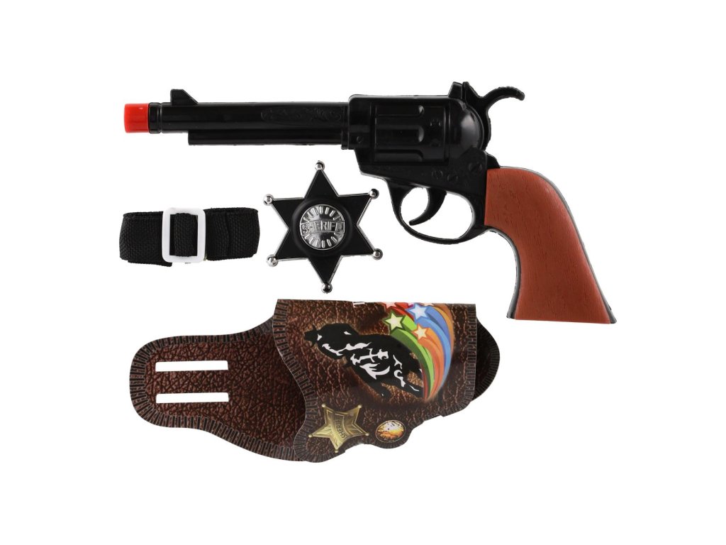 Dětská klapací pistole s doplňky je skvělým doplňkem pro hry na kovboje, šerify nebo dobrodružné příběhy z Divokého západu. Pistole je vyrobena z lehkého plastu a po stisknutí spouště vydává typický klapací zvuk, který dodává hře na autentičnosti – bez použití nábojů. Součástí balení jsou také tematické doplňky, které rozšiřují možnosti hry a podporují dětskou fantazii. Díky velikosti cca 22 cm se pistole dobře drží a je vhodná pro dětské ruce.