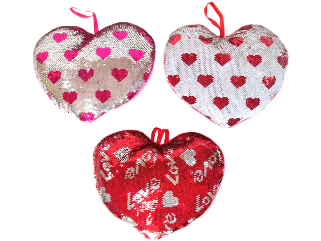 Krásné třpytivé flitrové srdíčko z plyše, s překlápěcím efektem, s poutkem na zavěšení, ve třech variantách provedení. Přední strana s flitry, zadní plyšová. Překlápěcí efekt - změna barvy/motivu po přejetí