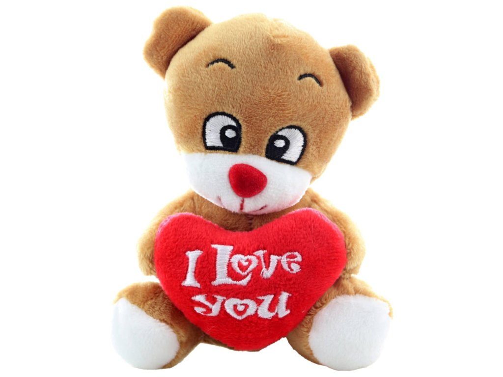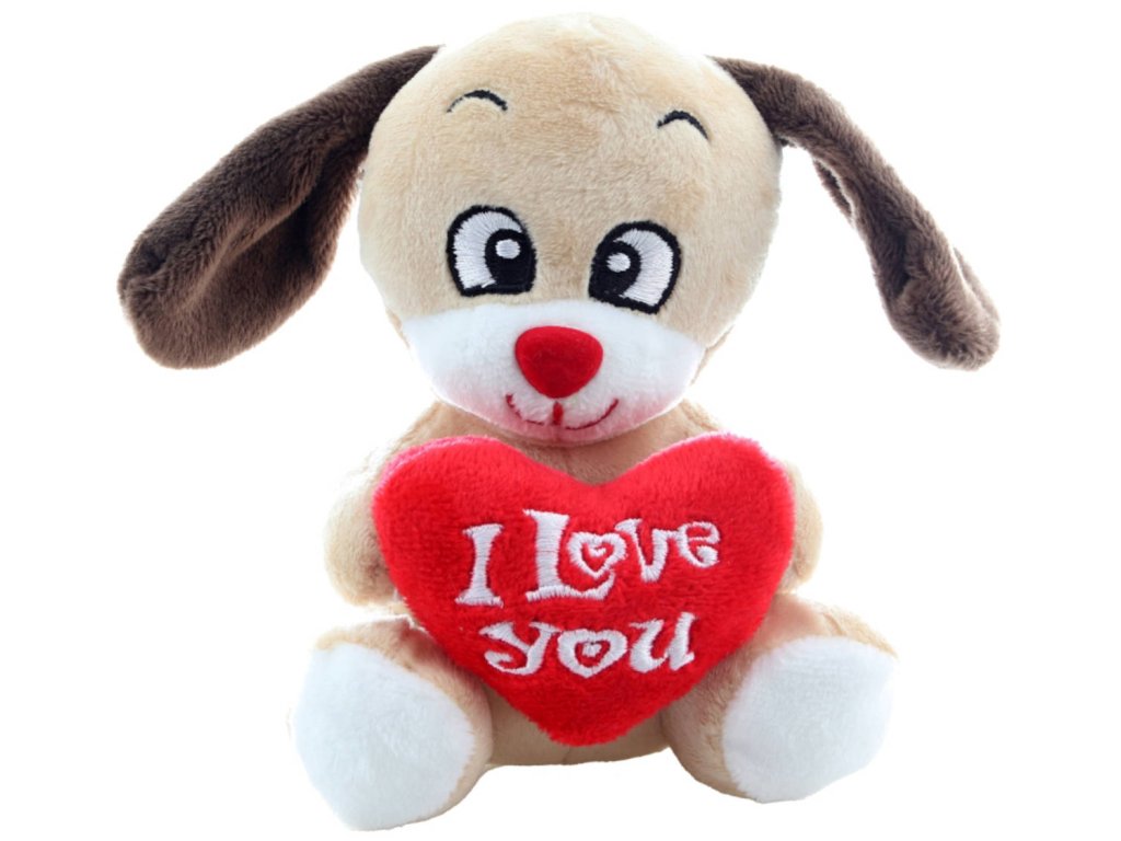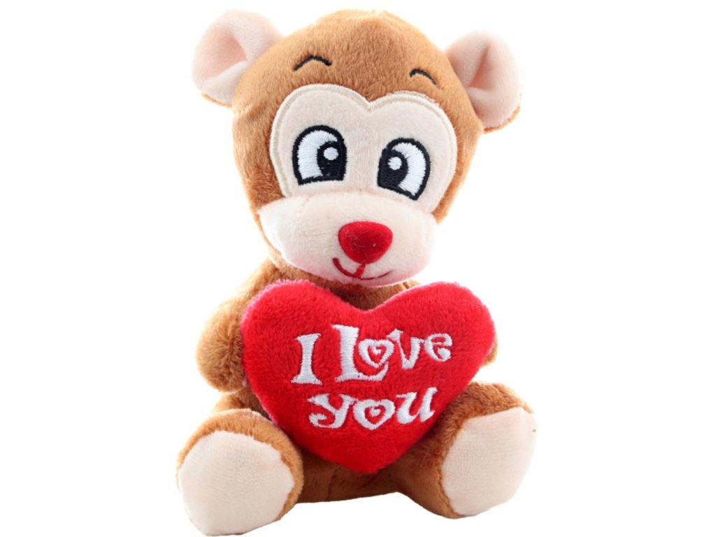 Plyšové zvířátko plyšák se srdíčkem s nápisem "I Love You" (Miluji Tě). Velikost 14cm, 4 varianty (pes, opice, medvěd, žirafa). Vhodné jako dárek z lásky, pro zamilované, na Valentýna.