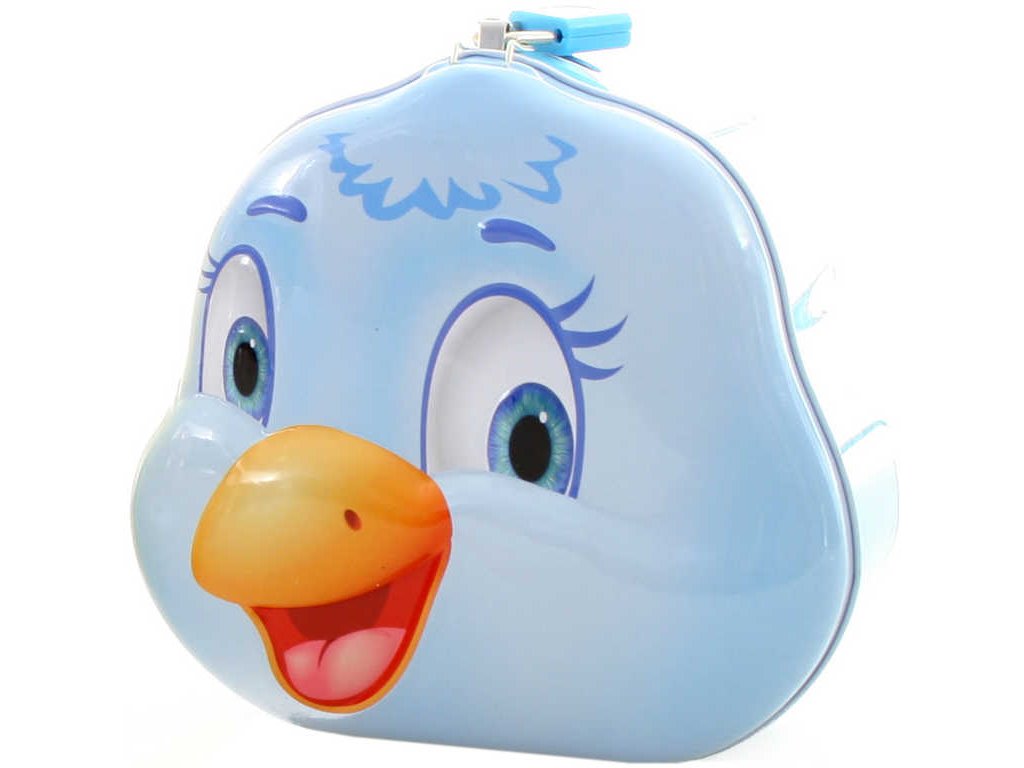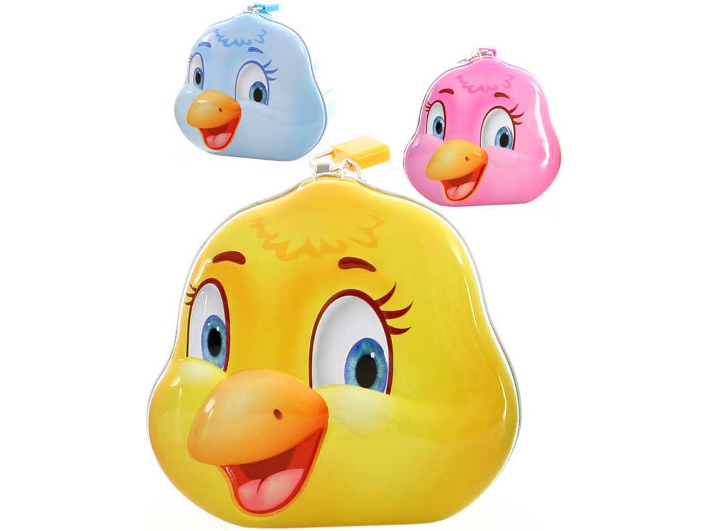 Krásná kovová pokladnička "kuře" na zámek ve tvaru kuřátka pro děti, ve třech barevných variantách. Baleno v sáčku, se dvěma klíčky.