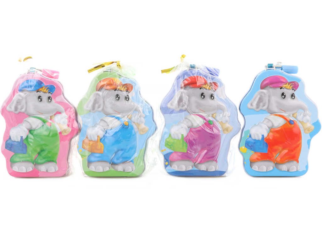 Pokladnička sloneček 11cm dětská plechová kasička na zámek 4 barvy