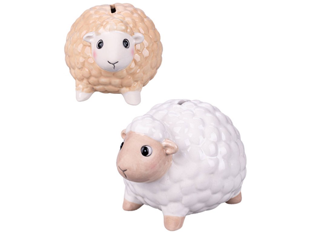 Originální dětská keramická pokladnička ovečka o velikosti 12cm, porcelánová kasička ve dvou barevných variantách, pro všechny malé šetřílky.
