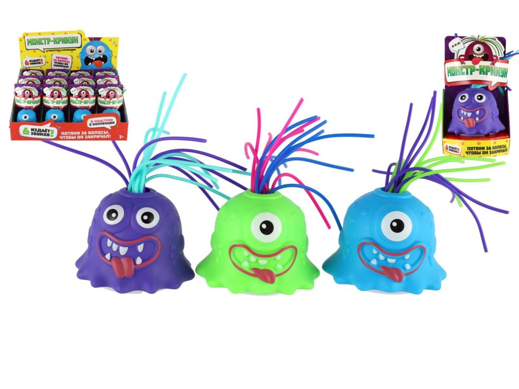 Plastová příšerka s přísavkou a střapatými vlasy je skvělou zábavou pro děti. Zatahej za vlasy a uslyšíš jaké vydáva zvuky. Baterie 3x AG3 jsou součástí výrobku.