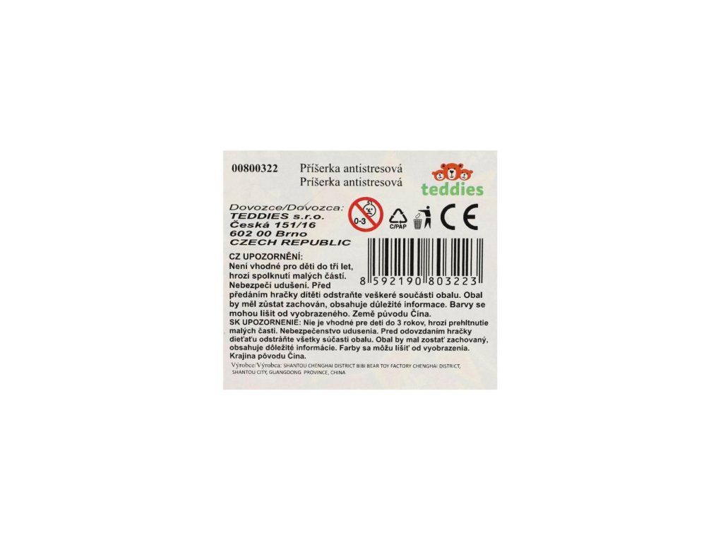 | Odpovědná osoba v EU: | TEDDIES s.r.o., Ceská 151/16, 60200 Brno |