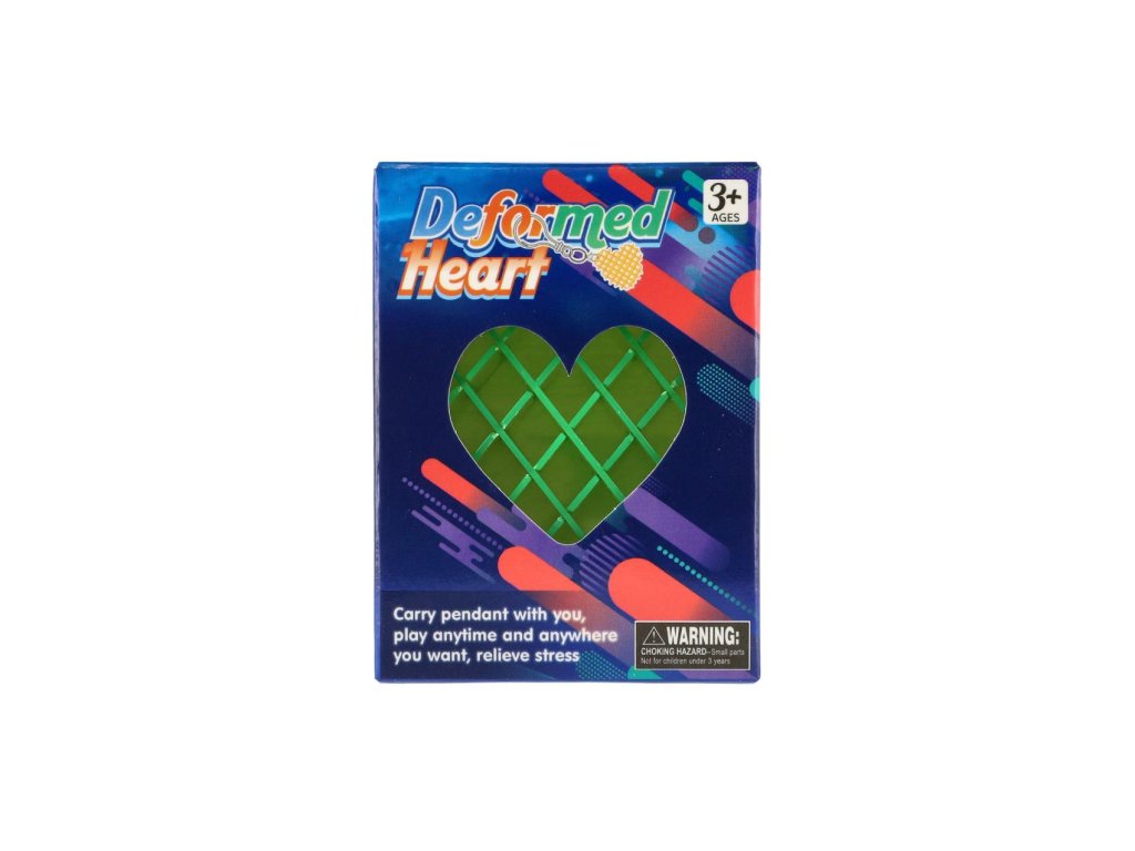 Přívěsek fidget srdce měnící tvar antistresový plast 6cm 4 barvy v krabičce 6x6,5cm 24ks v boxu