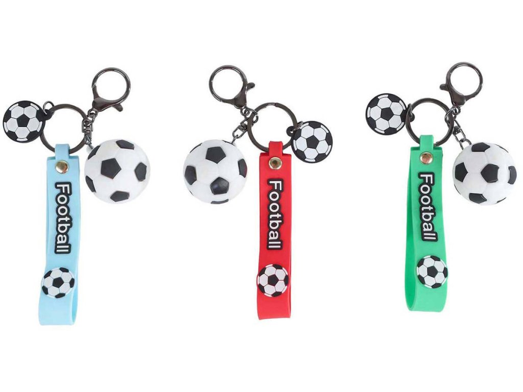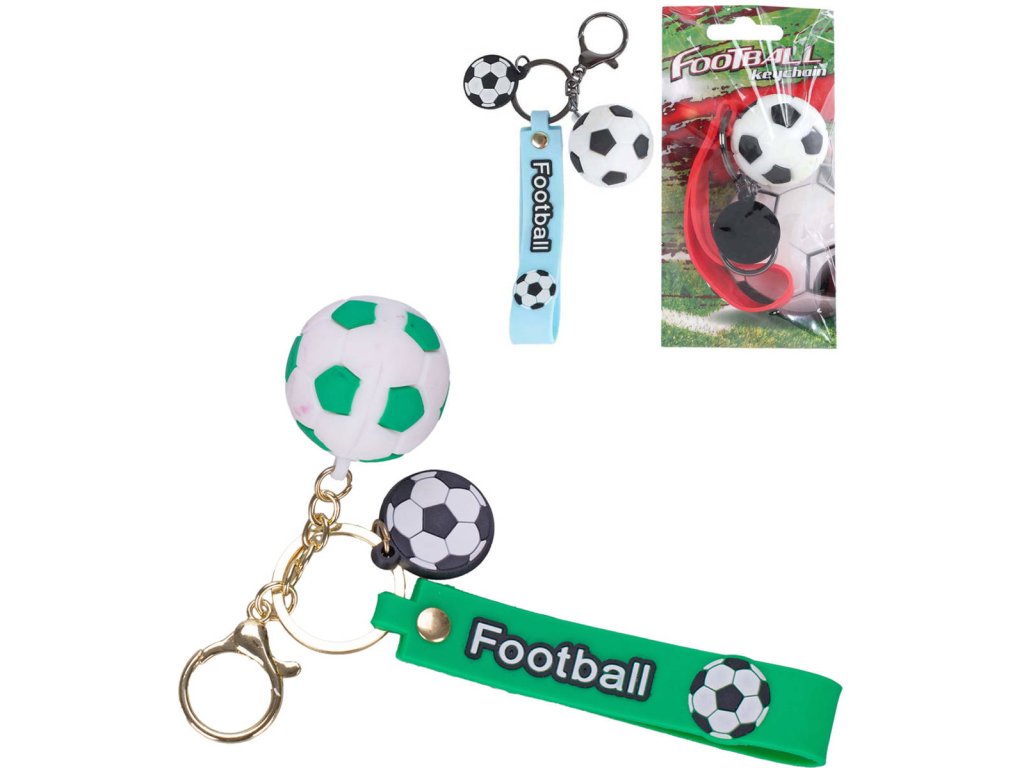 Přívěsek na klíče fotbalový míč, dětská klíčenka, 3 barevné varianty. Plastový 3D + 2D míč, kovový řetízek s karabinkou. Baleno v sáčku.