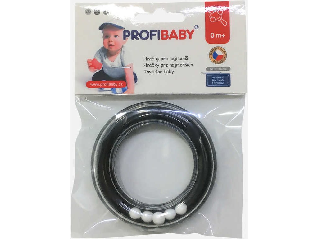 PROFIBABY Baby kroužek chrastítko s kuličkami černobílé pro miminko