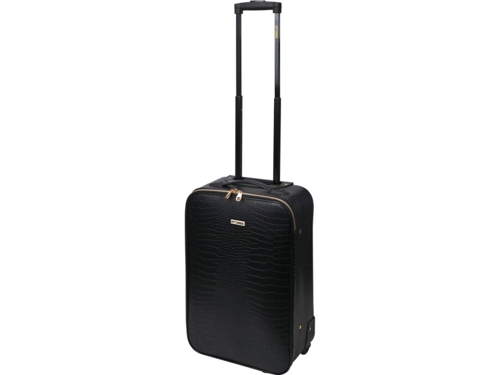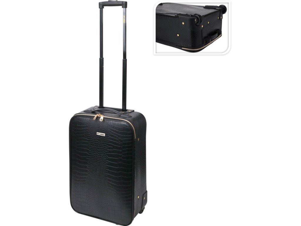 Do tohoto elegantního 28L kufru v Croco Design od ProWorld snadno sbalíte všechn své potřebnosti. Díky dvěma kolečkům pod vozíkem je tento kufr praktický na cesty. Pojízdný kufr se opravdu snadno přemisťuje díky dvěma kolečkům a teleskopické rukojeti, což z něj dělá vynikajícího společníka na každou cestu. V tomto kabinovém kufru v designu z umělé krokodýlí kůže s majestátními zlatými detaily navíc vaše věci cestují stylově.SpecifikaceBarva: Černá s kroko vzoremMateriál: PolyuretanRozměry: 34 x 17 x 52 cm (Š x H x V)2 kolaTeleskopická rukojeťPlastová spodní rukojeťElegantní zlaté detailyKapacita: 28l
