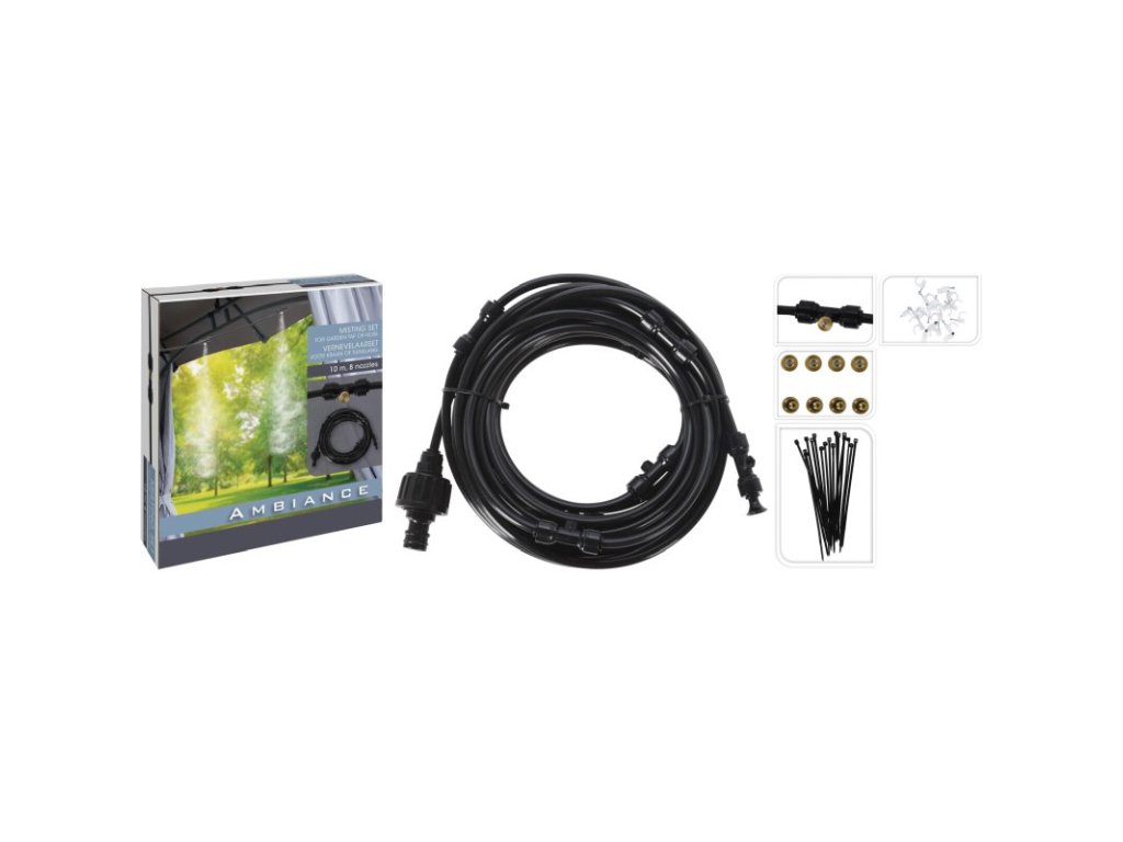 Dopřejte si během horkých letních dnů pořádnou pohodu na zahradě, terase či balkóně. Sada obsahuje přípojku k zahradní hadici, kohoutek, 8 trysek, 10 m hadice a 20 ks kabelových spojek. Trysky po připojení k vodě vytvářejí jemnou vodní mlhu. Vhodné i pro zavlažování rostlin.