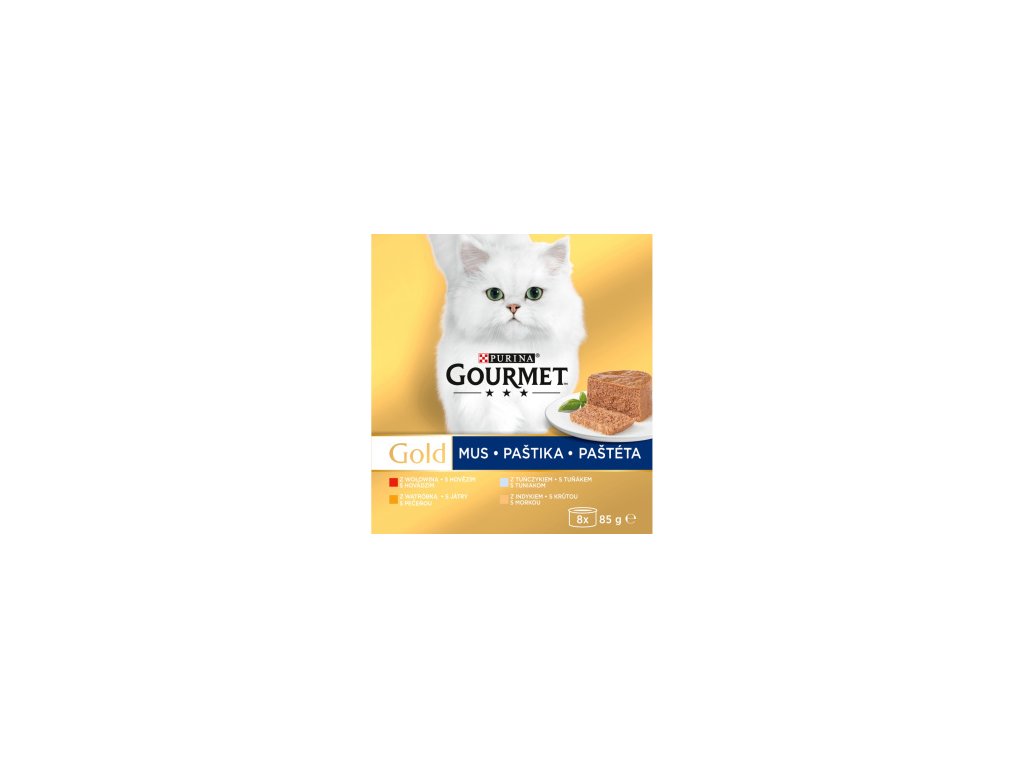 Purina Gourmet Gold pro kočky, tuňák, játra, krůta, hovězí paštika, 8x85 g
