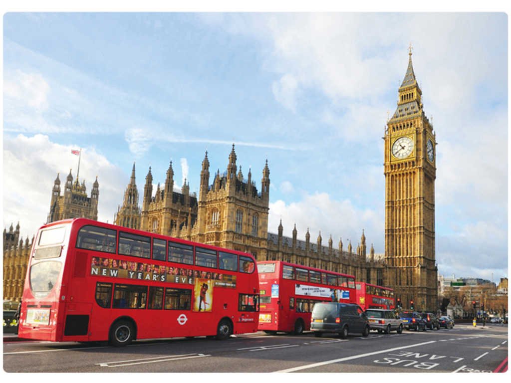 Puzzle skládačka ze které si můžete sestavit foto motiv Londýna se svými typickými dvoupodlažními autobusy - doubledeckery. Baleno v krabici.