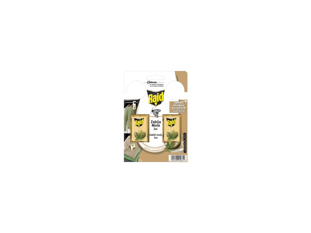 Raid sáčky proti molům je přípravek proti molům šatním do skříní a zásuvek s esencí cedrového dřeva, zanechává oděvy příjemně provoněné. Působí po doby 4 měsíců.