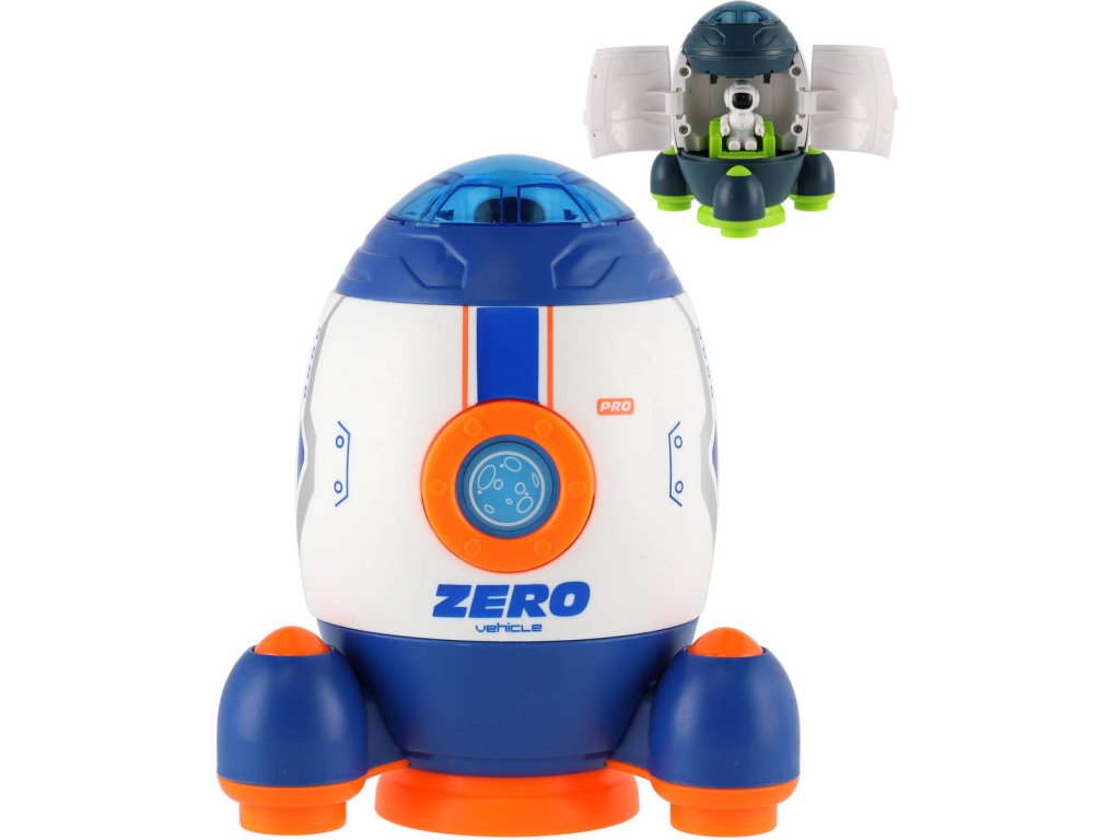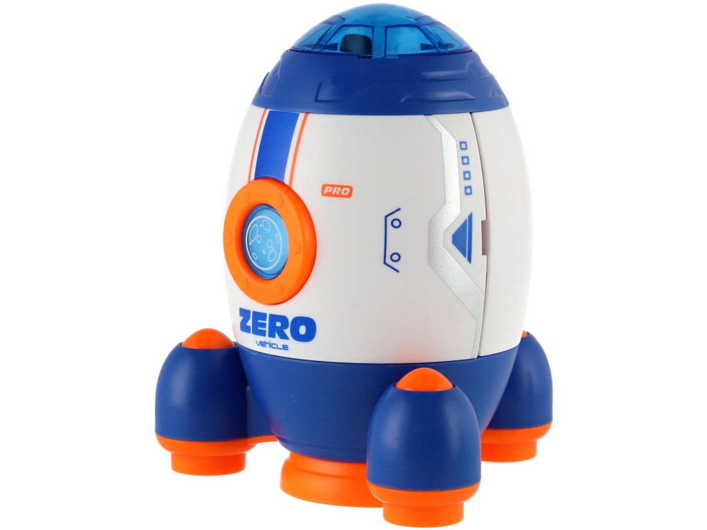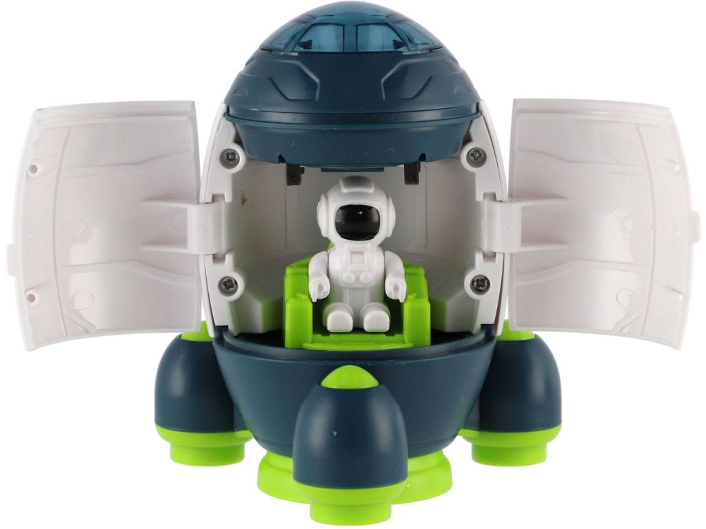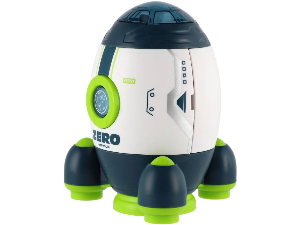 Otevřete raketu, sundejte vrchní část, ze které se stane vozítko na setvračník. Raketa se otáčí o 360°. 2in1.
