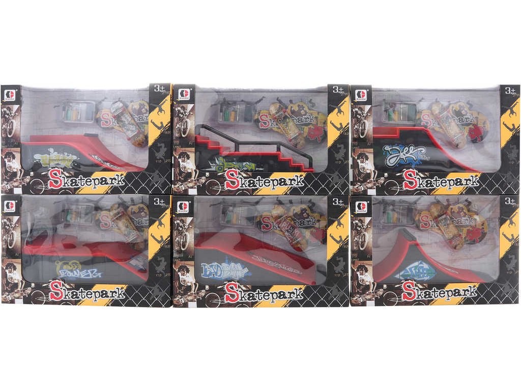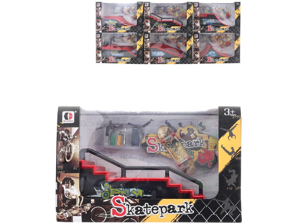 Dětský akční set plastová rampa a skateboard na ovládání prstem, v sadě s nástrojem pro výměnu koleček. Výzva pro procvičení motoriky prstů. Dostupné v šesti variantách provedení. Součástí balení jsou i 4 páry