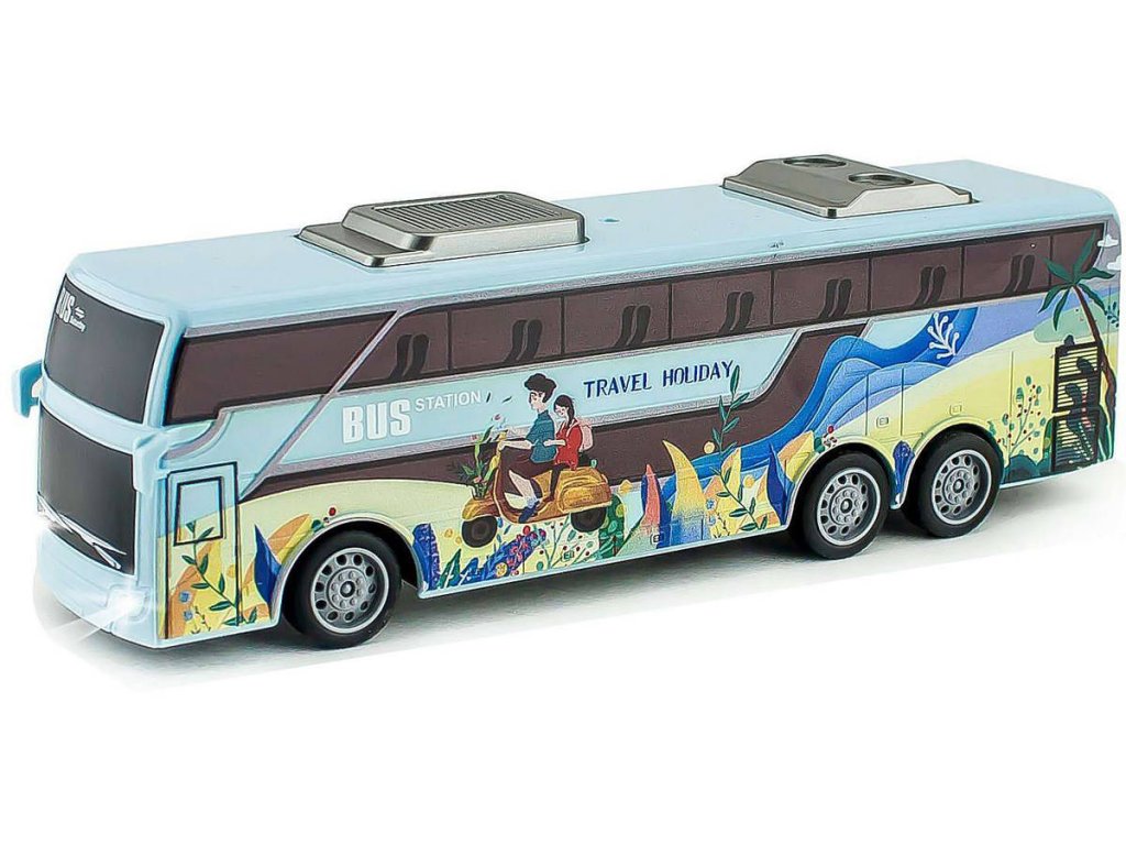RC Dálkový zájezdový autobus s potiskem, na vysílačku, frekvence 27MHz, velikost 24cm, plná funkce, hračka na baterie, se světlem a zvukem.