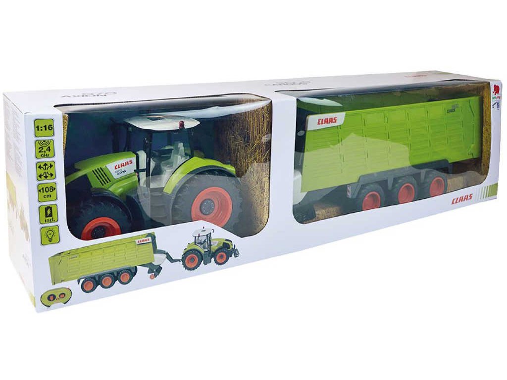 RC Traktor Claas Axion + přívěs na vysílačku 2,4GHz na baterie Světlo