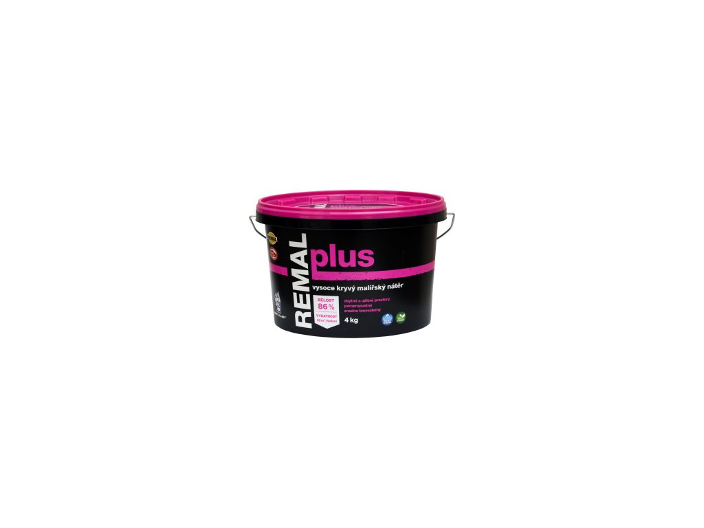 Barva REMAL Plus je klasická přírodní vodouředitelná přírodní kaolínová malířská barva na zeď. Výborně kryje, je prodyšná, otěruvzdorná a má standardní bělost 86 %. Barva na zeď REMAL se používá k malování stěn i stropů v interiéru na malování omítek, betonu, jako barva na sádrokarton, cetris desek, dřevotřísky i sanačních omítek. Barva vykazuje odolnost proti oděru za mokra dle ČSN EN ISO 11998 – třída 5. (klasifikace dle EN 13300).