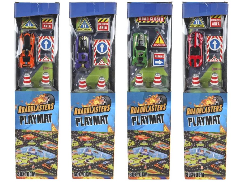 Roadblasters koberec dopravní město 80x70cm set s autem a doplňky 4 druhy