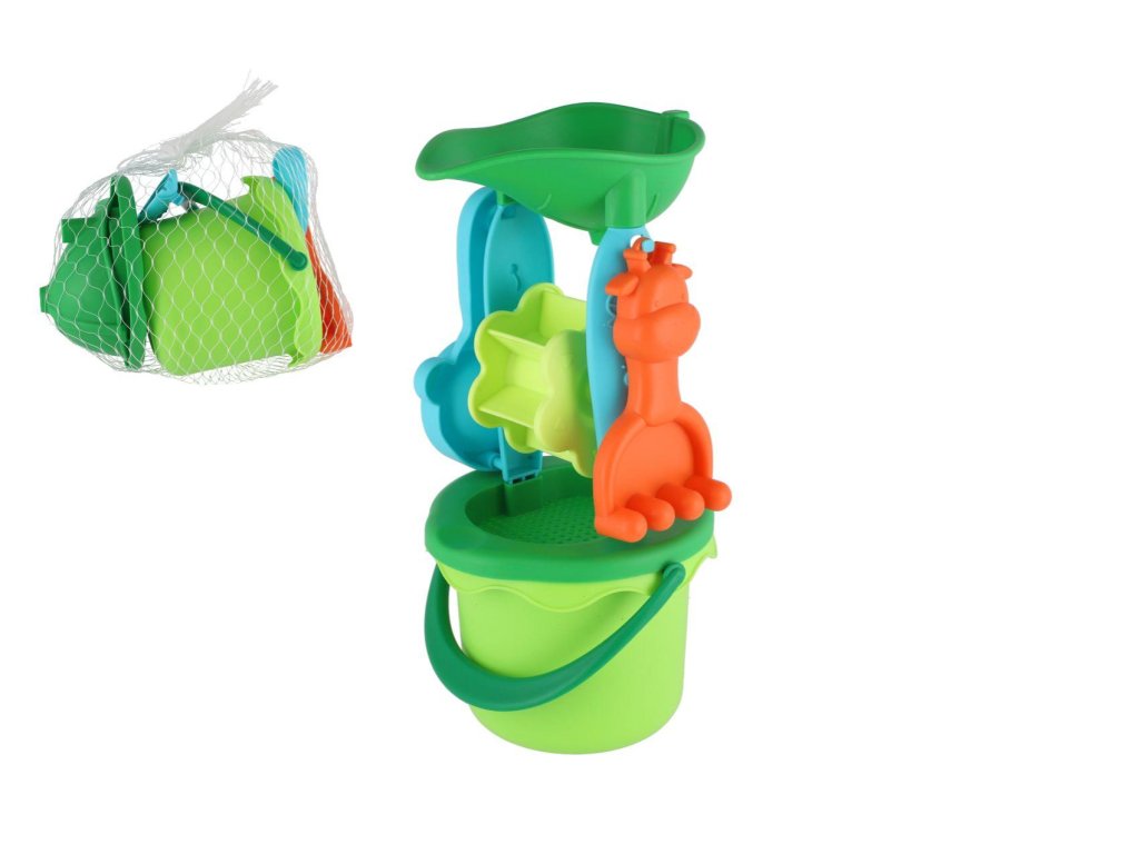 Sada na písek plast kbelík se sítkem 13x10cm, lopatka, hrabičky, mlýnek v síťce