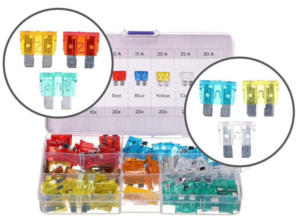 Praktická sada standardních automobilových pojistek SIXTOL FUSE SET 1, které najdou využití v každém běžném vozidle nebo motocyklu. Sada obsahuje 120 kusů nožových pojistek o jmenovitém výkonu od 5 do 30 A, které jsou rozlišeny různými barvami. Pojistky jsou vyrobeny v souladu s normou ISO8820. Každá pojistka je z horní strany označena příslušným jmenovitým proudem, aby bylo snadné pojistky rozlišit. Celá sada je uložena v praktickém plastovém pouzdru s přihrádkami.