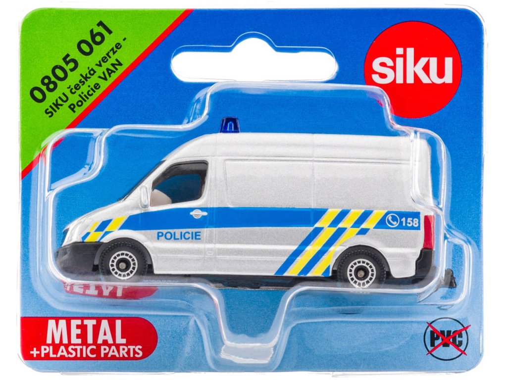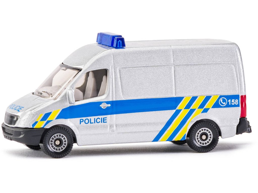 SIKU Auto dodávka Van - stříbrné vozidlo s grafikou Policie ČR. Český design, Česká policie. Realistický, detailní model z kovu a plastu.