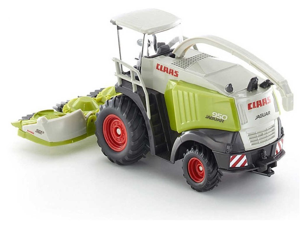 Žací stroj Jaguar 960, nová vlajková loď firmy Claas, je působivý i jako model v měřítku 1:32. Zadní kola jsou řiditelná s ovládáním na kapotě motoru, přední osa je odpružená. Boční a zadní kryty motoru jsou otevíratelné a skrývají propracovaný model motoru a mechanizace. Rameno výsypky je polohovatelné a otočné o 360 stupňů.Žací radlici lze výškově nastavit a boční části skopit nahoru do transportní polohy, případně celou radlici sundat z modelu. Model je vyroben převážně z kovu s propracovanými detaily a jemným potiskem. Jednoznačně vynikne, aťuž ve vaší sbírce nebo jako hračka v dětském pokoji.
