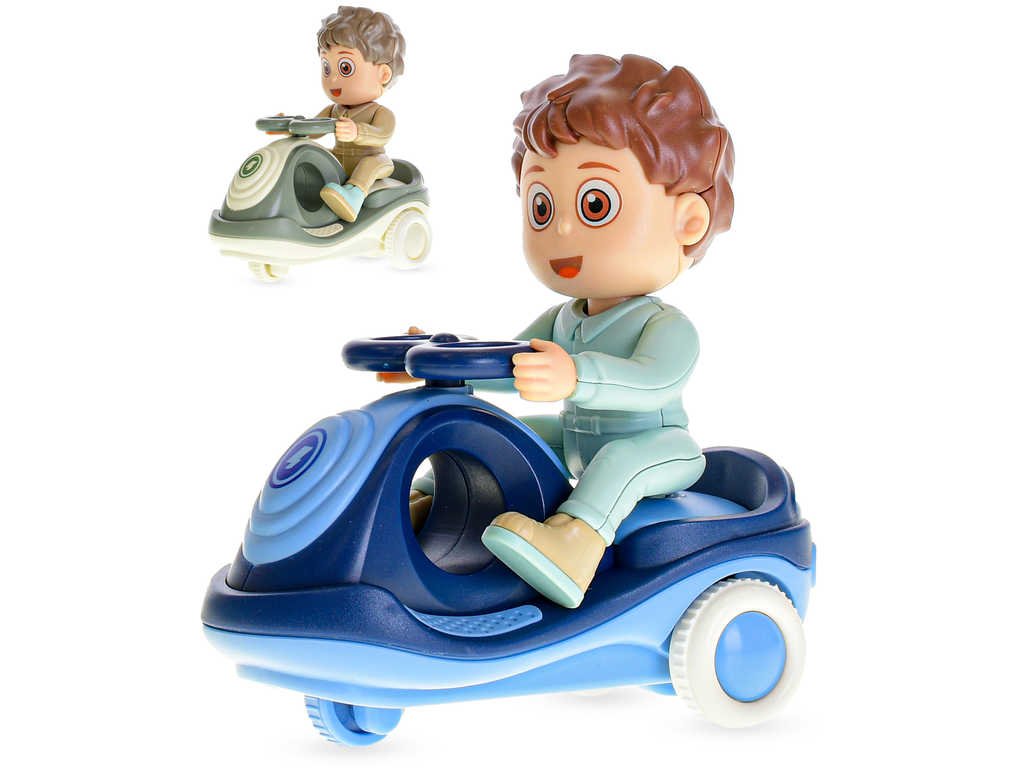 Vozítko plastový skútr se třemi koly, s pohonem na setrvačník, s panáčkem řidičem, pro ty nejmenší šoféry a řidiče. Postavička nelze oddělit od vozidla. Baleno volně.