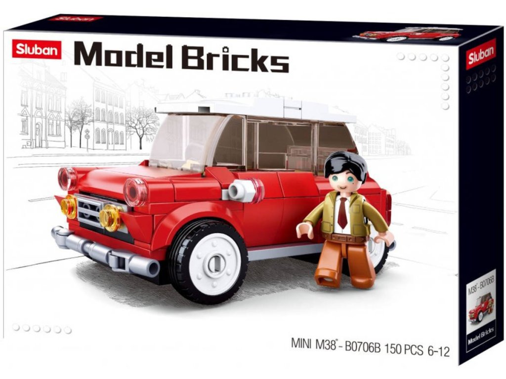 SLUBAN M38-B0706B Auto Mini vůz červený z edice Model Bricks. Kvalitní plastová stavebnice. 150 dílků + 1 figurka. Lze kombinovat s většinou ostatních známých stavebnic.